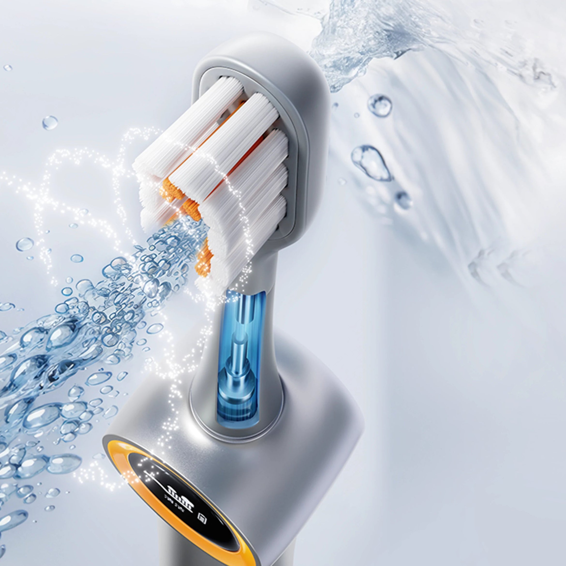 An innovative design, born from one simple purpose: to achieve a deeper clean without compromising the fundamental protection of your gums. Guided by this principle, our core team of oral health experts dedicated two years to this mission. We analyzed over 100 electric toothbrush models and conducted thousands of tests, all leading to a single goal: to introduce to the world a revolutionary toothbrush that cleans teeth using the power of super bubbles and jet streams.