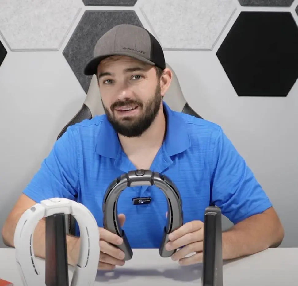 I purchased this based soley on You Tube Reviews. I thought the fan was good - then I switched in the Heating/ Cooling Element - WOW!!! It's just like a Temperature Controlled Cooler and Heater for your neck! It actually makes a Huge Difference. A Solid 5/5. You must Buy One!